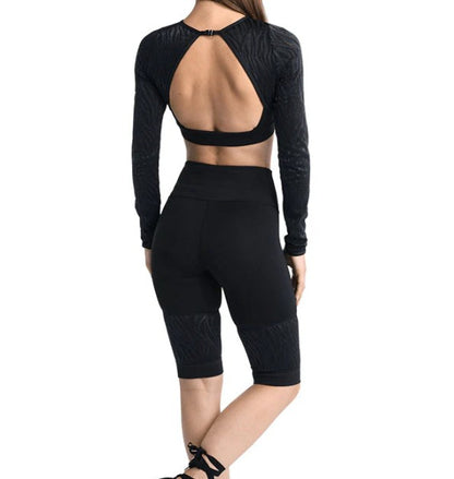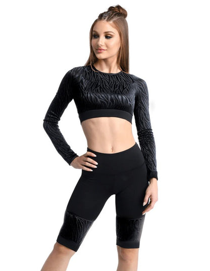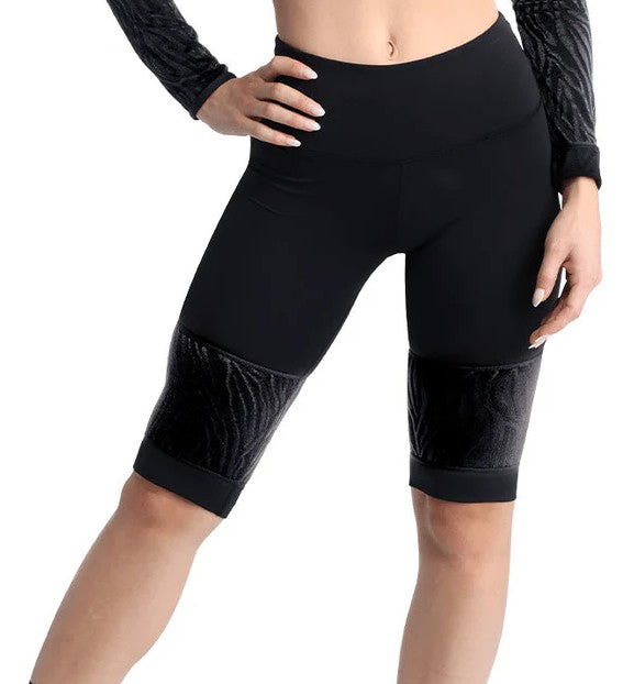This adult high-waisted bike, knee-length short is stylishly detailed with zebra patterned mesh panels and flat lock seams.